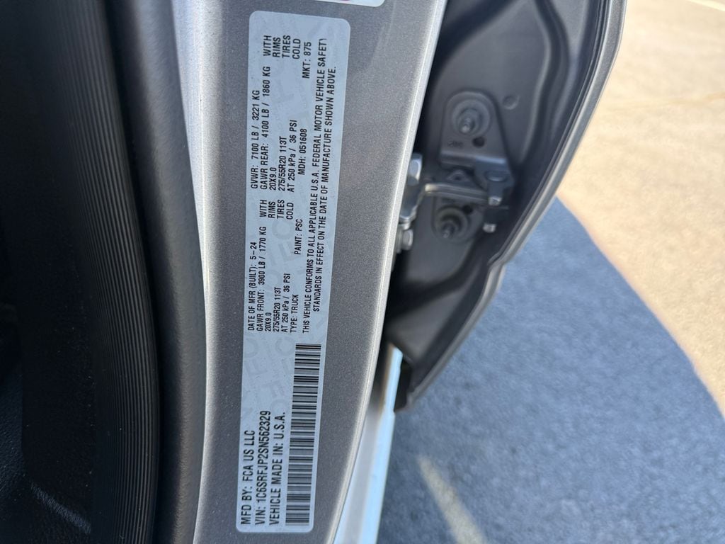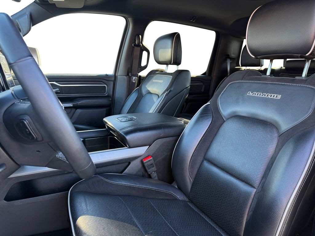 Laramie Level 1 Equipment Group (Rain Sensitive Windshield Wipers and Remote Tailgate Release), Quick Order Package 21H Laramie, FCA US LLC Certified Pre-Owned Certified, 10 Speakers, 3 Rear Seat Head Restraints, 3.55 Rear Axle Ratio, 4 Way Front Headrests, 4-Wheel Disc Brakes, 4G LTE Wi-Fi Hot Spot, ABS brakes, Air Conditioning, Alloy wheels, AM/FM radio: SiriusXM with 360L, Apple CarPlay, Apple CarPlay/Android Auto, Audio memory, Auto High-beam Headlights, Auto Power-Folding Mirrors, Auto-dimming door mirrors, Auto-Dimming Exterior Driver Mirror, Auto-dimming Rear-View mirror, Automatic temperature control, Brake assist, Bumpers: chrome, Chrome Exterior Mirrors, Compass, Connected Travel & Traffic Services, Connectivity - US/Canada, Convex Wide-Angle Exterior Mirror Insert, Delay-off headlights, Driver door bin, Driver Seat Memory, Driver vanity mirror, Dual front impact airbags, Dual front side impact airbags, Electronic Stability Control, Exterior Mirrors Courtesy Lamps, Exterior Mirrors w/Heating Element, Exterior Mirrors w/Memory, Exterior Mirrors w/Supplemental Signals, Front anti-roll bar, Front Center Armrest w/Storage, Front dual zone A/C, Front fog lights, Front License Plate Bracket, Front reading lights, Front Seat Back Map Pockets, Front wheel independent suspension, Fully automatic headlights, Garage door transmitter, Google Android Auto, GPS Antenna Input, GPS Navigation, HD Radio, Heated door mirrors, Heated Front Seats, Heated front seats, Heated rear seats, Heated Steering Wheel, Heated steering wheel, Illuminated entry, Integrated Voice Command w/Bluetooth, Leather steering wheel, Leather Trim 40/20/40 Bench Seat, Low tire pressure warning, Manufacturer's Statement of Origin, Memory seat, Navigation System, Occupant sensing airbag, Outside temperature display, Overhead airbag, Overhead console, Panic alarm, ParkView Rear Back-Up Camera, Passenger door bin, Passenger vanity mirror, Power 2-Way Driver Lumbar Adjust, Power 2-Way Passenger Lumbar Adjust, Power Adjust 8-Way Front Passenger Seat, Power door mirrors, Power driver seat, Power passenger seat, Power steering, Power windows, Radio data system, Radio: Uconnect 5 Nav w/12.0" Display, RAM Grille Badge - Chrome, Rear anti-roll bar, Rear r