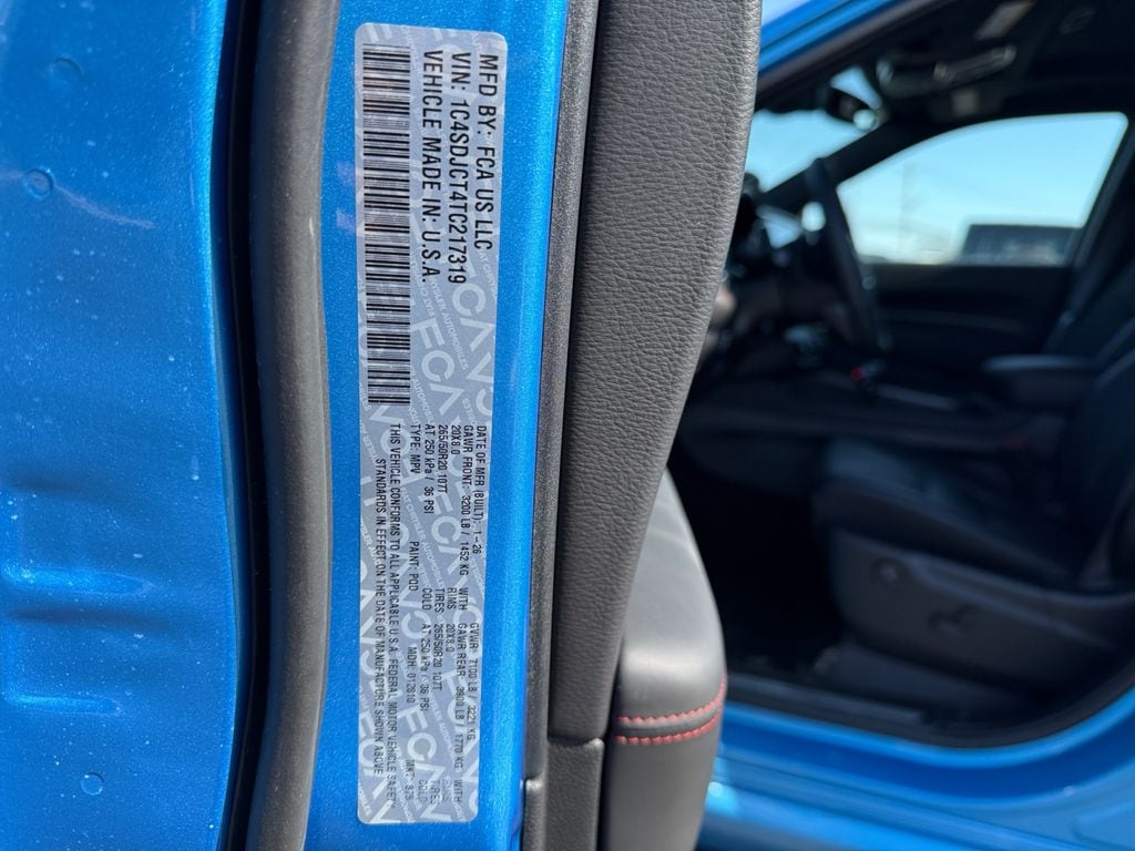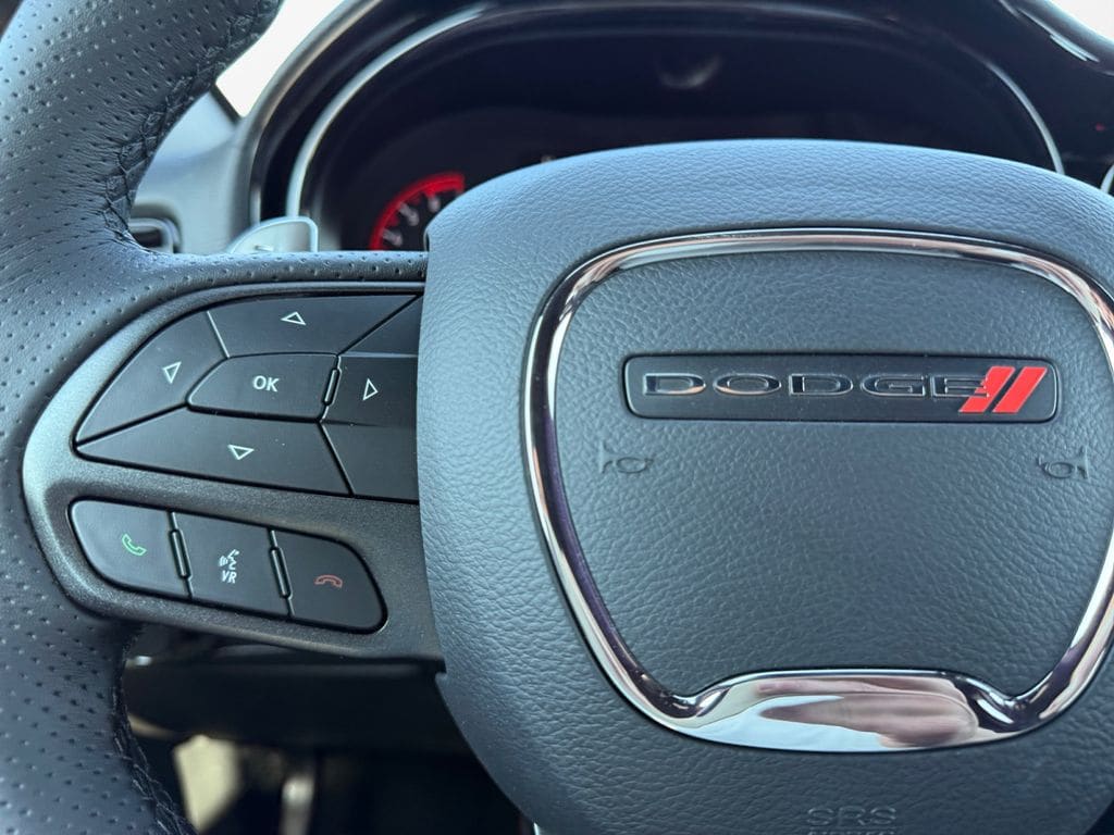 Blacktop Package (Black Roof Rails, Gloss Black Badges, Integrated Roof Rail Crossbars, and Satin Black Dodge Tail Lamp Badge), Quick Order Package 22T GT Plus (115V Auxiliary Power Outlet, 7 and 4 Pin Wiring Harness, Adaptive Cruise Control with Stop, Auto High Beam Headlamp Control, Auto-Dimming Exterior Driver Mirror, Blind Spot with Trailer Detection, Class IV Receiver Hitch, Dual Remote USB Port - Charge Only, Exterior Mirrors with Heating Element, Exterior Mirrors with Memory, Exterior Mirrors with Supplemental Signals, Floor Console with Leather Armrest, Full Speed Forward Collision Warning Plus, Gloss Black Exterior Mirrors, Heated Second Row Seats, Leather Trimmed Bucket Seats, Leather Wrapped Door Panels, LED Auxiliary Low Beam and Turn Signal, Power 6x9 Multi-Function Foldaway Mirrors, Power 8-Way Driver Memory 8-Way Passenger Seats, Power Driver/Passenger 4-Way Lumbar Adjust, Power Sunroof, Power Tilt and Telescopic Steering Column, Radio/Driver Seat/Mirrors Memory, Red Accent Stitching, Trailer Brake Control, and Ventilated Front Seats), AWD, 3.09 Rear Axle Ratio, 3rd row seats: split-bench, 4-Wheel Disc Brakes, 9 Speakers, ABS brakes, Air Conditioning, Alloy wheels, AM/FM radio: SiriusXM w/360L, Apple CarPlay/Android Auto, Auto-dimming Rear-View mirror, Auto-leveling suspension, Automatic temperature control, Brake assist, Bumpers: body-color, Cloth Bucket Seats with Shift Insert, Compass, Delay-off headlights, Driver door bin, Driver vanity mirror, Dual front impact airbags, Dual front side impact airbags, Electronic Stability Control, Emergency communication system: Dodge Connect, Four wheel independent suspension, Front anti-roll bar, Front Bucket Seats, Front Center Armrest w/Storage, Front dual zone A/C, Front License Plate Bracket, Front reading lights, Fully automatic headlights, Garage door transmitter, Heated door mirrors, Heated front seats, Heated steering wheel, Illuminated entry, Knee airbag, Leather steering wheel, Low tire pressure warning, MyFlexCare Service Plan, Navigation System, Occupant sensing airbag, Outside temperature display, Overhead airbag, Overhead console, Panic alarm, ParkView Rear Back-Up Camera, Passenger door bin, Passenger vanity mirror, Power door mirrors, Power driver seat, Power Liftgate, Power steering, Power windows, Radio data system, Radio: Uconnect 5 Nav with 10.1" Display, Rain sensing wipers, Rear air conditioning, Rear anti-roll bar, Rear Load Leveling Suspension, Rear reading lights, Rear seat center armrest, Rear window defroster, Rear window wiper, Remote keyless entry, Security system, Speed control, Speed-sensing steering, Speed-Sensitive Wipers, Split folding rear seat, Spoiler, Sport steering wheel, Steering wheel mounted audio controls, Tachometer, Telescoping steering wheel, Tilt steering wheel, Traction control, Trip computer, Variably intermittent wipers, Voltmeter, Wheels: 20" x 8" Black Noise Split 5-Spoke, and Wheels: 20" x 8" Satin Carbon Split 5-Spoke.