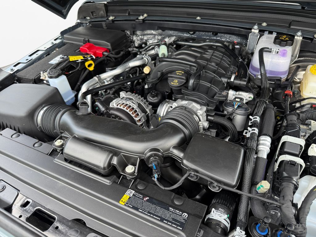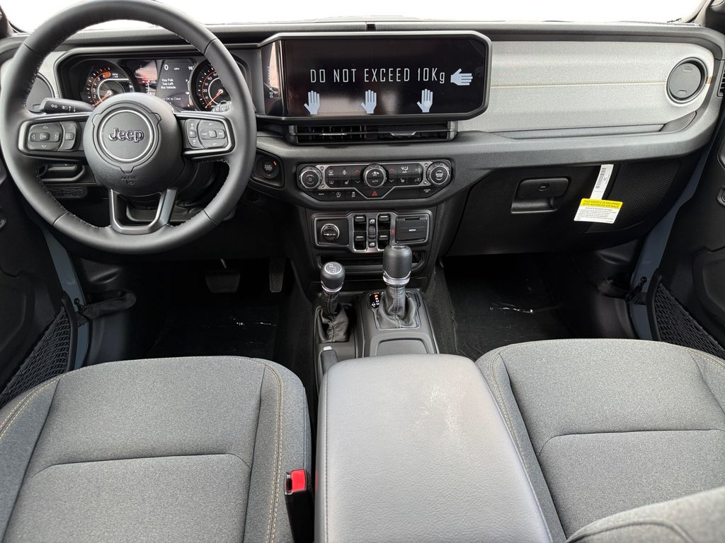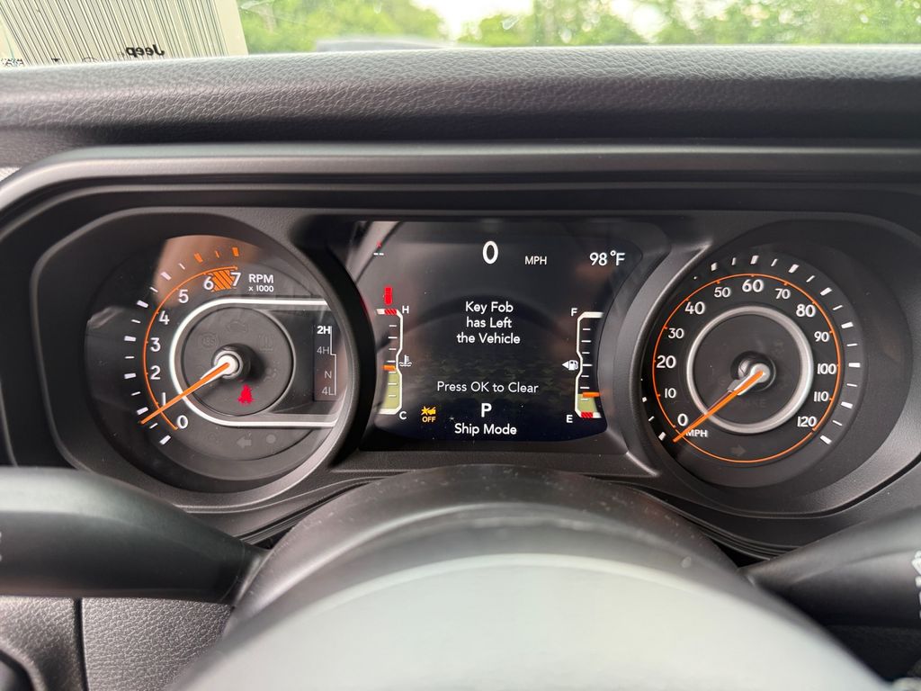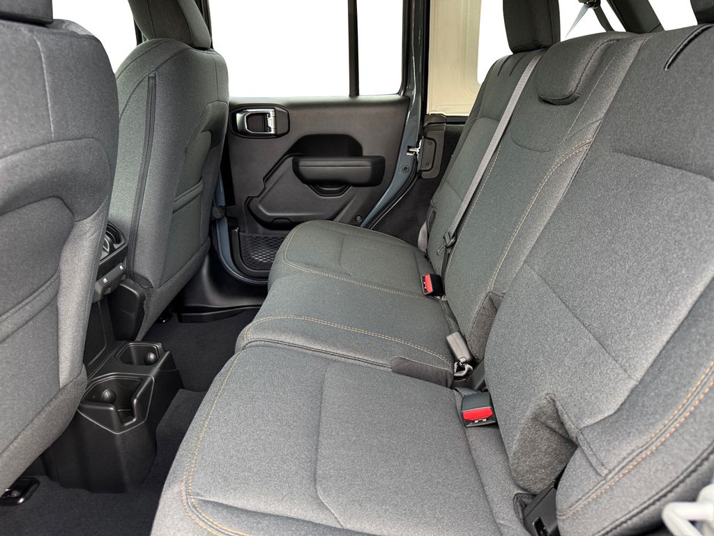 Convenience Group (2-Door Passive Entry, Front Door Locks, Air Conditioning w/Auto Temperature Control, Air Filtering, Cluster 7.0" TFT Color Display, Emergency/Assistance Call, Heated Front Seats, Heated Steering Wheel, Remote Start System, and Universal Garage Door Opener), Quick Order Package 24S Sport S (Advanced Brake Assist, Automatic Headlamps, Corning Gorilla Glass, Deep Tint Sunscreen Windows, Enhanced Adaptive Cruise Control, Full Speed Forward Collision Warning Plus, Power Heated Mirrors, Premium Wrapped Steering Wheel, Security Alarm, Sun Visors w/Illuminated Vanity Mirrors, and Wheels: 17" x 7.5" Gray), 110 MPH Vehicle Max Speed Calibration, 3.45 Overall Top Gear Ratio, 4-Wheel Disc Brakes, 8 Speakers, ABS brakes, Air Conditioning, AM/FM radio: SiriusXM, Apple CarPlay/Android Auto, Aux Battery, Black 3-Piece Hard Top, Brake assist, Cloth Low-Back Bucket Seats, Compass, Delay-off headlights, Driver door bin, Driver vanity mirror, Dual front impact airbags, Dual front side impact airbags, Electronic Stability Control, Freedom Panel Storage Bag, Front anti-roll bar, Front Bucket Seats, Front Center Armrest w/Storage, Front fog lights, Front reading lights, Illuminated entry, Integrated roll-over protection, Jeep Trail Rated Kit, Low tire pressure warning, MOPAR All-Weather Floor Mats, Non-Lock Fuel Cap w/o Discriminator, Normal Duty Suspension, Occupant sensing airbag, Outside temperature display, Overhead airbag, Panic alarm, ParkView Rear Back-Up Camera, Passenger door bin, Passenger vanity mirror, Power steering, Power windows, Radio data system, Radio: Uconnect 5 w/12.3" Display, Rear anti-roll bar, Rear reading lights, Rear Window Defroster, Rear Window Wiper/Washer, Remote keyless entry, Speed control, Split folding rear seat, Steering wheel mounted audio controls, Stop-Start Dual Battery System, Tachometer, Telescoping steering wheel, Tilt steering wheel, Traction control, Trip computer, Variably intermittent wipers, and Wheels: 17" x 7.5" Black Steel Styled.