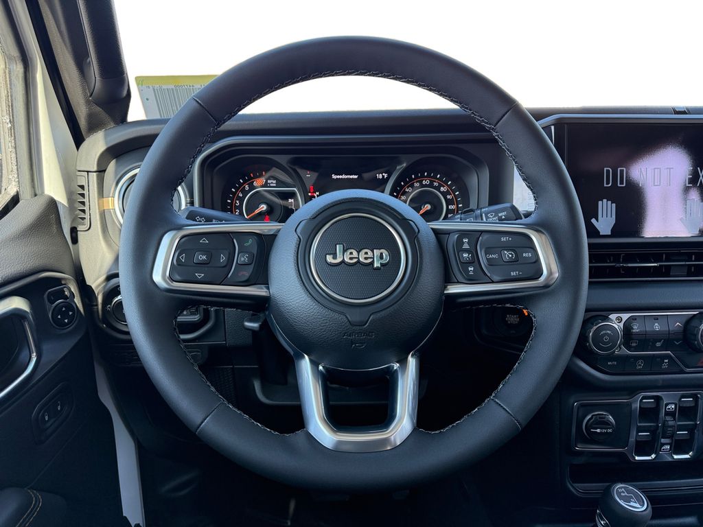 Quick Order Package 24G, Sahara Popular Equipment Group (12.3" Touchscreen Display, 4G LTE Wi-Fi Hot Spot, Alpine Premium Audio System, Apple CarPlay, Auto High Beam Headlamp Control, Auto-Dimming Rear-View Mirror, Blind Spot and Cross Path Detection, Connected Travel and Traffic Services, Connectivity - US/Canada, For More Info, Call 800-643-2112, Google Android Auto, GPS Navigation, Hard Seat Back, HD Radio, Integrated Center Stack Radio, Integrated Off-Road Camera, Integrated Voice Command with Bluetooth, Leather Wrapped Park Brake Handle, Leather Wrapped Shift Knob, McKinley Trimmed Seats, ParkSense Rear Park Assist System, Power 4-Way Driver Lumbar Adjust, Power 4-Way Passenger Lumbar Adjust, Power Adjust 8-Way Driver Seat, Power Adjust 8-Way Front Passenger Seat, Radio: Uconnect 5 Navigation with 12.3" Display, Side Steps, SiriusXM Radio Service, SiriusXM with 360L, and Universal Garage Door Opener), 3.45 Overall Top Gear Ratio, 4-Wheel Disc Brakes, 8 Speakers, ABS brakes, Air Conditioning, Alloy wheels, AM/FM radio: SiriusXM with 360L, Apple CarPlay/Android Auto, Automatic temperature control, Aux Battery, Body Color 3-Piece Hard Top, Brake assist, Cloth Low-Back Bucket Seats, Compass, Delay-off headlights, Driver door bin, Driver vanity mirror, Dual front impact airbags, Dual front side impact airbags, Electronic Stability Control, Emergency communication system: Jeep Connect, Freedom Panel Storage Bag, Front anti-roll bar, Front Bucket Seats, Front Center Armrest w/Storage, Front dual zone A/C, Front fog lights, Front License Plate Bracket, Front reading lights, Fully automatic headlights, Heated door mirrors, Heated front seats, Heated steering wheel, Heavy Duty Suspension with Gas Shocks, Illuminated entry, Integrated roll-over protection, Jeep Trail Rated Kit, Low tire pressure warning, MOPAR All-Weather Floor Mats, Myflexcare Service Plan, No Soft Top, Non-Lock Fuel Cap Without Discriminator, Occupant sensing airbag, Outside temperature display, Overhead airbag, Panic alarm, ParkView Rear Back-Up Camera, Passenger door bin, Passenger vanity mirror, Power door mirrors, Power steering, Power windows, Radio data system, Radio: Uconnect 5 with 12.3" Display, Rear anti-roll bar, Rear reading lights, Rear Window Defroster, Rear Window Wiper/Washer, Remote keyless entry, Security system, Speed control, Split folding rear seat, Steering wheel mounted audio controls, Stop-Start Dual Battery System, Tachometer, Telescoping steering wheel, Tilt steering wheel, Traction control, Trip computer, Variably intermittent wipers, Voltmeter, and Wheels: 18" x 7.5" Machine/Painted Gray.