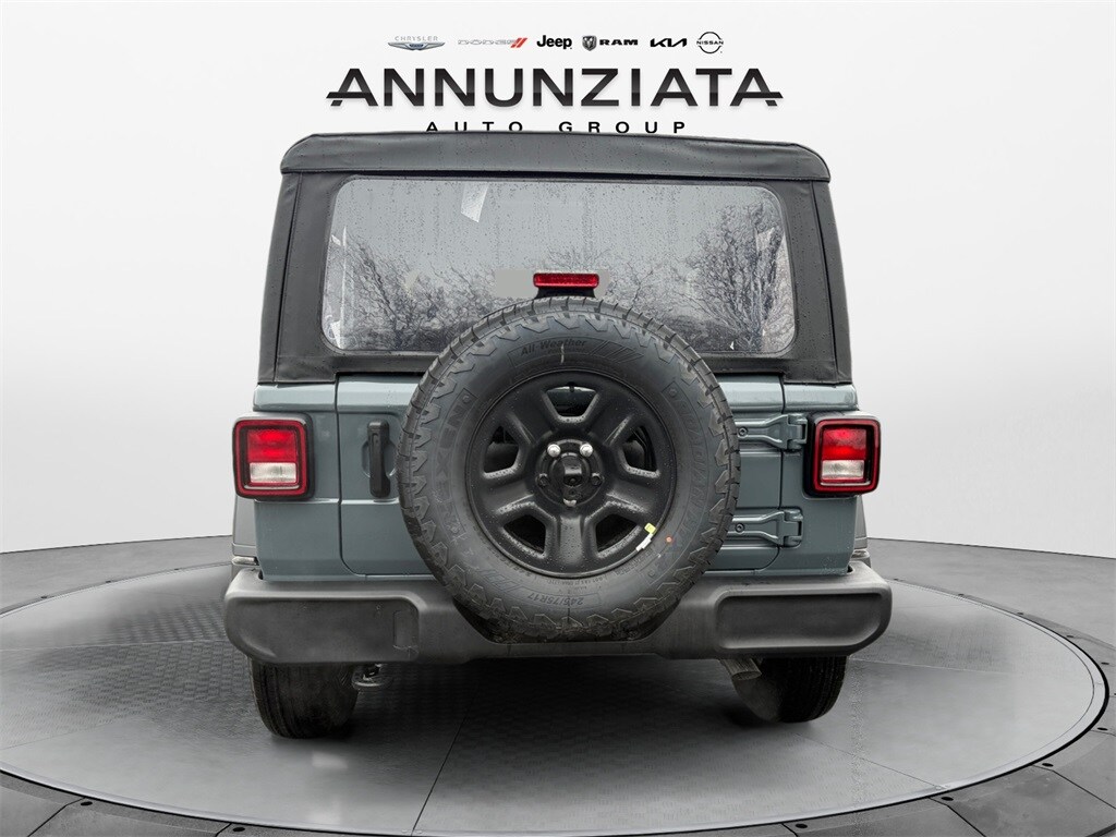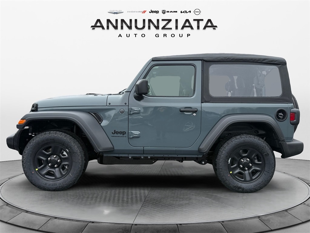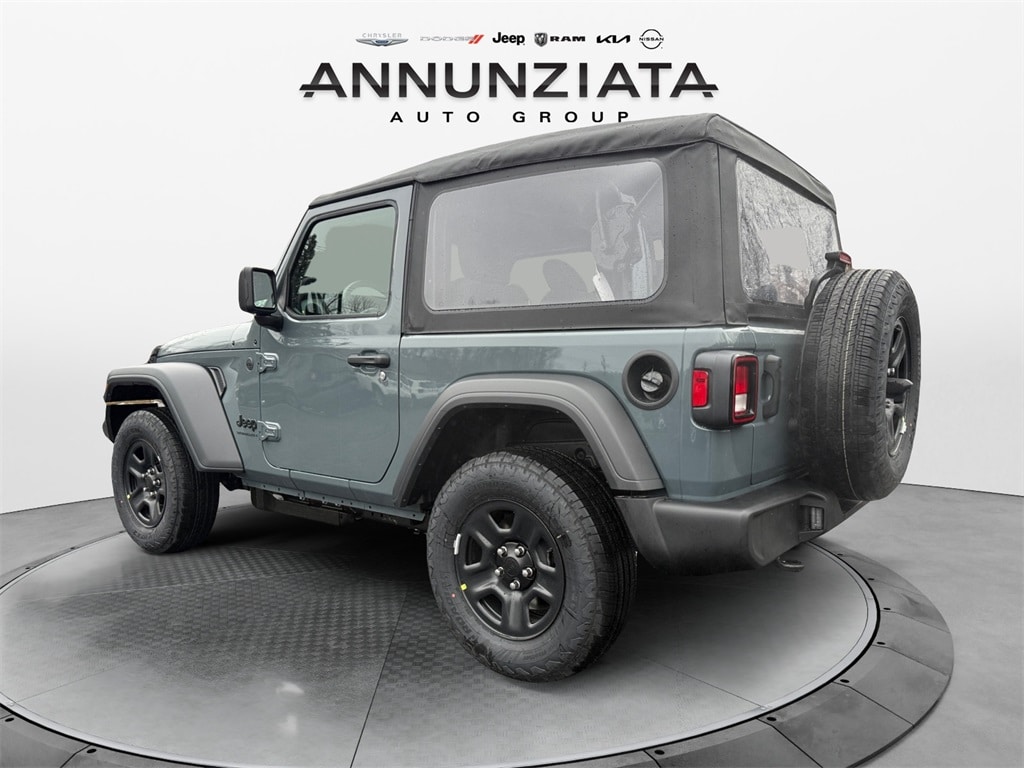 Quick Order Package 23B Sport, 12.3" Touchscreen Display, 3.45 Overall Top Gear Ratio, 4-Wheel Disc Brakes, 4G LTE Wi-Fi Hot Spot, 8 Speakers, ABS brakes, Air Conditioning, AM/FM radio: SiriusXM with 360L, Apple CarPlay, Apple CarPlay/Android Auto, Aux Battery, Brake assist, Cloth Low-Back Bucket Seats, Compass, Connectivity - US/Canada, Delay-off headlights, Driver door bin, Driver vanity mirror, Dual front impact airbags, Dual front side impact airbags, Electronic Stability Control, For More Info, Call 800-643-2112, Front anti-roll bar, Front Bucket Seats, Front Center Armrest w/Storage, Front fog lights, Front reading lights, Google Android Auto, Illuminated entry, Integrated Center Stack Radio, Integrated roll-over protection, Jeep Trail Rated Kit, Low tire pressure warning, MOPAR All-Weather Floor Mats, Myflexcare Service Plan, Non-Lock Fuel Cap Without Discriminator, Normal Duty Suspension, Occupant sensing airbag, Outside temperature display, Overhead airbag, Panic alarm, ParkView Rear Back-Up Camera, Passenger door bin, Passenger vanity mirror, Power steering, Power windows, Radio data system, Radio: Uconnect 5 with 12.3" Display, Rear anti-roll bar, Rear reading lights, Remote keyless entry, SiriusXM Radio Service, SiriusXM with 360L, Speed control, Steering wheel mounted audio controls, Stop-Start Dual Battery System, Tachometer, Telescoping steering wheel, Tilt steering wheel, Traction control, Trip computer, Variably intermittent wipers, and Wheels: 17" x 7.5" Black Steel Styled.