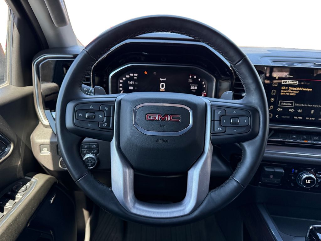 High Capacity Suspension Package, Preferred Equipment Group 4SA (120-Volt Bed Mounted Power Outlet, 120-Volt Interior Power Outlet, 170 Amp Alternator, 2 Charge/Data USB Ports, 2 Type-C Charge-Only Rear USB Ports, 6-Speaker Audio System Feature, Auto-Locking Rear Differential, Auxiliary External Transmission Oil Cooler, Chrome Header & Chrome Grille Insert Bars, Color-Keyed Carpeting Floor Covering, Deep-Tinted Glass, Electric Rear-Window Defogger, Front Frame-Mounted Black Recovery Hooks, Front Rain-Sensing Wipers, GMC Connected Access Capable, HD Rear Vision Camera, Keyless Open & Start, LED Cargo Area Lighting, Manual Tilt-Wheel & Telescoping Steering Column, OnStar & GMC Connected Services Capable, Perimeter Lighting, Power Door Locks, Power Front Passenger Windows w/Express Up/Down, Power Front Windows w/Driver Express Up/Down, Power Rear Windows w/Express Down, Push Button Start, Rear Wheelhouse Liners, Remote Vehicle Starter System, SiriusXM w/360L, Steering Wheel Audio Controls, Theft Deterrent System (Unauthorized Entry), and Wi-Fi Hotspot Capable), ProGrade Trailering System (Hitch View, In-Vehicle Trailering System App, and Integrated Trailer Brake Controller), SLT Convenience Package (2 Charge/Data USB Ports Inside Center Console, Electronic Precision Shift, Floor-Mounted Center Console, Front Bucket Seats, Power Rake & Telescoping Steering Column, Premium Bose 7-Speaker Sound System, Ventilated Driver & Front Passenger Seats, and Wireless Charging), SLT Preferred Package (Adaptive Cruise Control, Heated 2nd Row Outboard Seats, Power Sliding Rear Window w/Rear Defogger, and Universal Home Remote), SLT Premium Package (20" Polished Aluminum Wheels and Chrome Wheel To Wheel Assist Steps), Standard Suspension Package, Trailering Package (Hitch Guidance), X31 Off-Road & Protection Package (All-Weather Floor Liner (LPO) and Spray-On Pickup Bedliner w/GMC Logo), X31 Off-Road Package (Dual Exhaust System, Heavy-Duty Air Filter, Hill Descent Control, Off-Road Suspension, and X31 Hard Badge), 10-Speed Automatic, 4WD, Black Leather, 10-Way Power Driver Seat Adjuster w/Lumbar, 10-Way Power Passenger Seat Adjuster w/Lumbar, 220 Amp Alternator, 3.23 Rear Axle Ratio, 4-Wheel Disc Brakes, 6 Speakers, ABS brakes, Air Conditioning, Alloy wheels, AM/FM radio: SiriusXM with 360L, Apple CarPlay/Android Auto, Auto High-beam Headlights, Auto-dimming door mirrors, Auto-dimming Rear-View mirror, Automatic Emergency Braking, Automatic temperature control, Body Color Wheel Arch Moldings (LPO), Brake assist, Buckle to Drive, Bumpers: chrome, Compass, Delay-off headlights, Driver door bin, Driver Memory, Driver vanity mirror, Dual front impact airbags, Dual front side impact airbags, Electronic Stability Control, Engine Block Heater, Following Distance Indicator, Forward Collision Alert, Front 40/20/40 Split-Bench Seat, Front anti-roll bar, Front Center Armrest w/Storage, Front dual zone A/C, Front fog lights, Front License Plate Kit, Front Pedestrian Braking, Front reading lights, Front wheel independent suspension, Fully automatic headlights, Heated door mirrors, Heated Driver & Front Outboard Passenger Seating, Heated front seats, Heated steering wheel, Illuminated entry, IntelliBeam Automatic High Beam On/Off, Lane Keep Assist w/Lane Departure Warning, Low tire pressure warning, Memory seat, Navigation System, Occupant sensing airbag, Outside temperature display, Overhead airbag, Overhead console, Panic alarm, Passenger door bin, Passenger vanity mirror, Perf Leather-Appointed Front Outboard Seat Trim, Power door mirrors, Power driver seat, Power passenger seat, Power steering, Power Sunroof, Power windows, Premium audio system: GMC Infotainment System, Radio data system, Radio: Premium GMC Infotainment Audio System, Rain sensing wipers, Rea